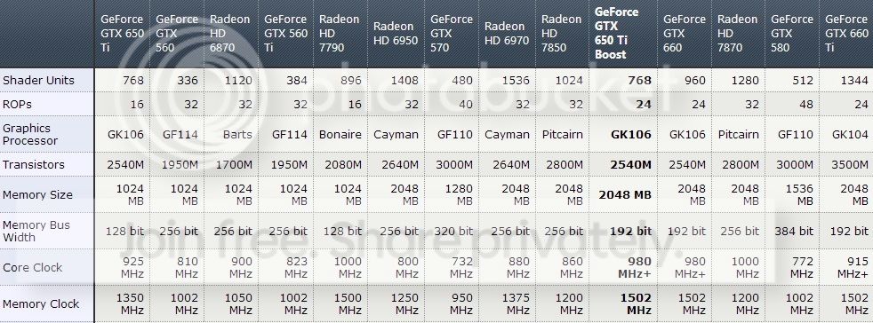 Comparison GTX 650 Ti Boost (Standar) dan VGA lainnya: